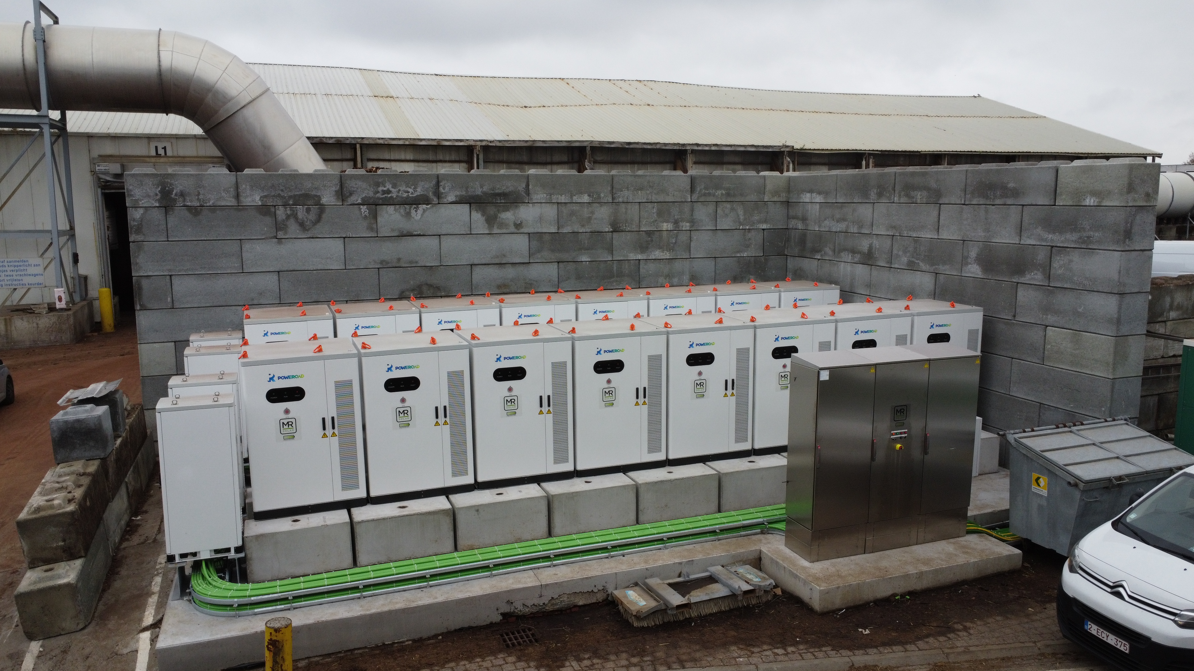 Tegen eind 2024 vroeg Karel Sterckx om de installatie uit te breiden. In samenspraak met de klant en in functie van zijn noden, beslisten we om een 16-delig Poweroad batterijsysteem van 1,68 MVA te installeren.